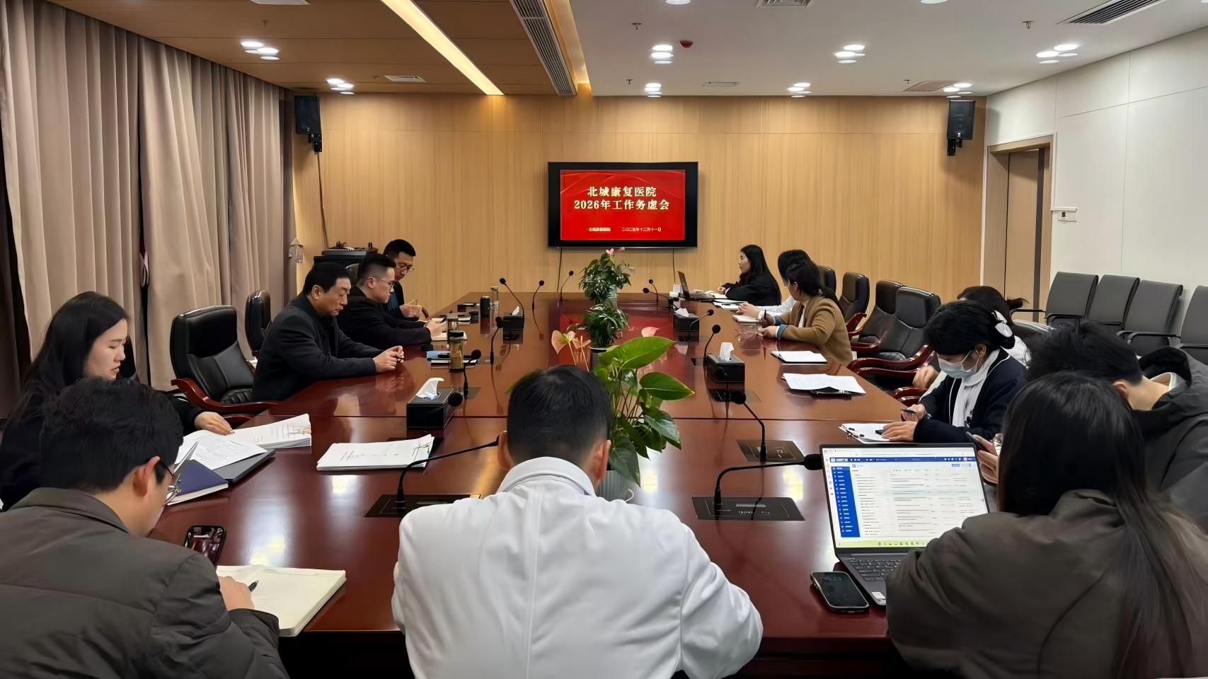 12月11日下午,北城康复医院召开2026年工作务虚会。医院领导班子、各部门负责人等参会,会议由蒋航主持。